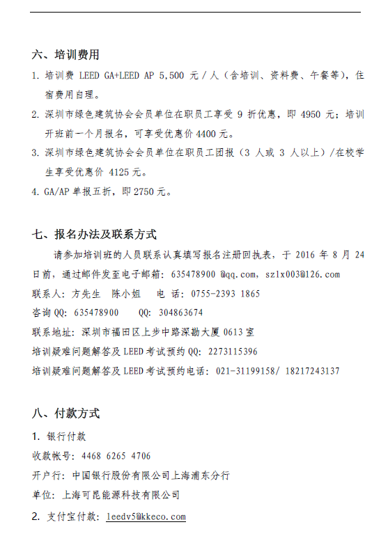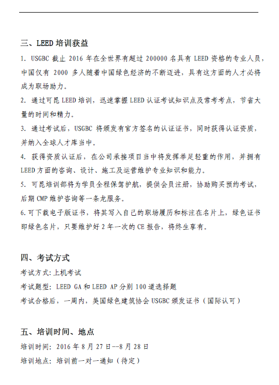 關(guān)于2016年度第二期LEED 培訓(xùn)的報名通知