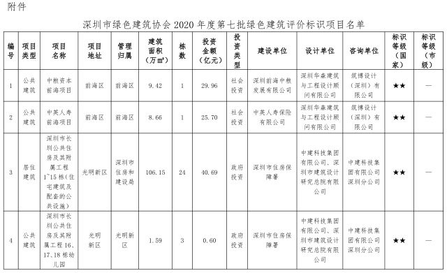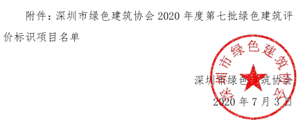 深圳市綠色建筑協(xié)會(huì)關(guān)于2020年度第七批綠色建筑評(píng)價(jià)標(biāo)識(shí)項(xiàng)目的公示