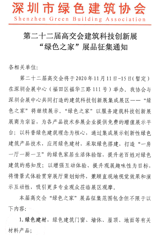 2020高交會建筑科技創(chuàng)新展“綠色之家”展品開始征集啦!