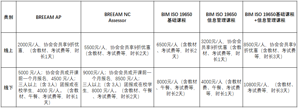 3)BREEAM AP/NC Assessor和BIM ISO 19650線下培訓(xùn)時間:2020年下半年