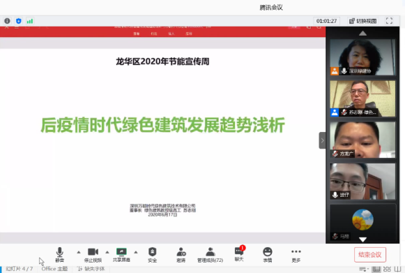 龍華區(qū)住房和建設局建設科技與建筑廢棄物管理科汪波主持會議并作動員講話:為深入踐行綠色發(fā)展理念,普及建筑節(jié)能與綠色建筑發(fā)展知識,推動龍華區(qū)建筑節(jié)能與綠色建筑發(fā)展水平不斷提高,此次開展綠色建筑“云上”講堂具有十分重要的意義,“提升綠建品質,打造健康建筑”離不開政府組織和引導,更離不開每一位行業(yè)從業(yè)人員的積極推動,希望大家積極行動,為建設生態(tài)良好、社會和諧的美麗龍華而努力。