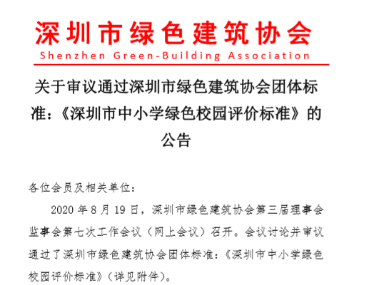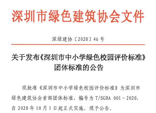 9月15日,深圳市綠色建筑協(xié)會(huì)首部團(tuán)體標(biāo)準(zhǔn)《深圳市中小學(xué)綠色校園評(píng)價(jià)標(biāo)準(zhǔn)》(簡(jiǎn)稱《標(biāo)準(zhǔn)》)發(fā)布,并將于2020年10月1日起正式實(shí)施。