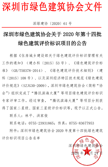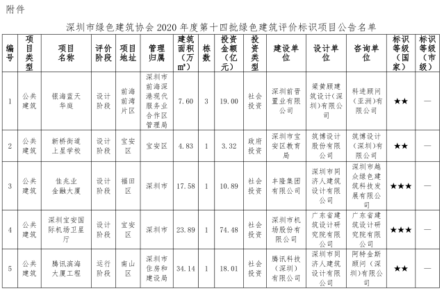 深圳市綠色建筑協(xié)會(huì)關(guān)于2020年度第十四批綠色建筑評(píng)價(jià)標(biāo)識(shí)項(xiàng)目的公告