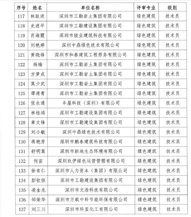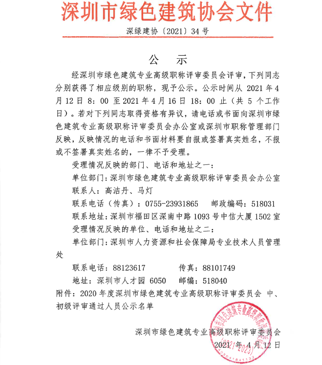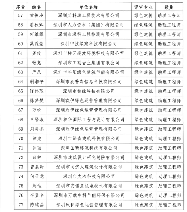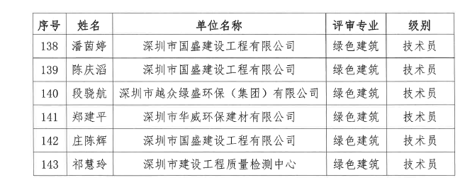 2020年度深圳市綠色建筑專業(yè)高級職稱評審委員會(huì)中、初級評審?fù)ㄟ^人員公示