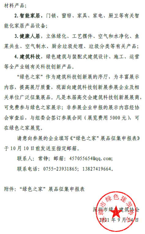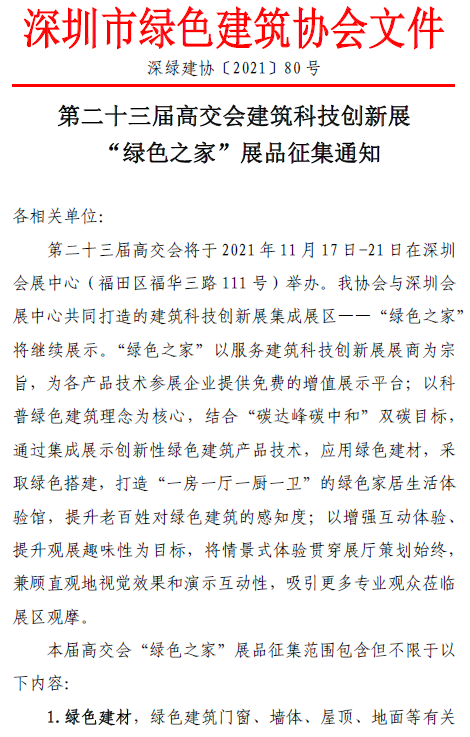 第二十三屆高交會建筑科技創(chuàng)新展 “綠色之家”展品征集通知