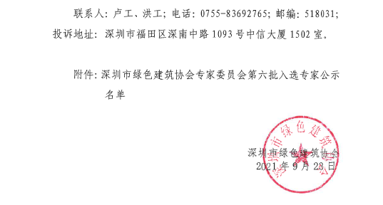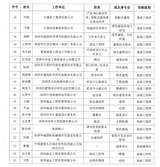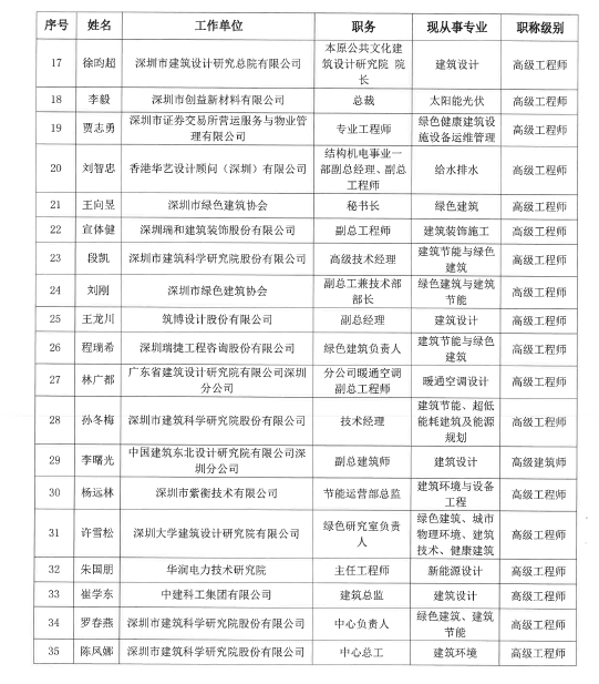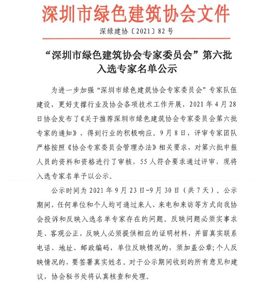 “深圳市綠色建筑協(xié)會專家委員會”第六批入選專家名單公示