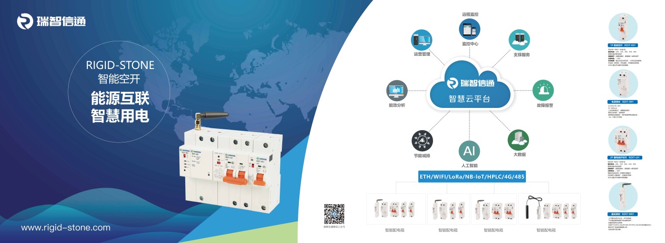 智慧空開RZXT-D01、RZXT-D02是深圳市瑞智信通科技有限公司(以下簡稱瑞智信通)自主研發(fā)的一款用于智慧用電安全監(jiān)管和電能管理的開關產品.產品具有短路、過流、過壓、欠壓、過溫保護和漏保功能,故障顯示、自檢、功率限定、計量、合閘分閘控制、開關定時、告警等功能,通過RJ45有線和WIFI、NB-IOT、LoRa、HPLC、4G、485多種通訊方式與監(jiān)控主站通訊,在監(jiān)控主站進行統(tǒng)一數據查詢、管理控制,為用電安全監(jiān)管提供科學的決策依據,達到智慧用電管理的目的。