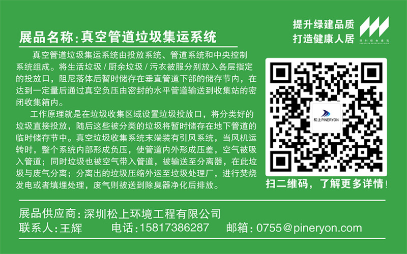 真空管道垃圾集運系統(tǒng)由投放系統(tǒng)、管道系統(tǒng)和中央控制系統(tǒng)組成。將生活垃圾/廚余垃圾/污衣被服分別放入各層指定的投放口,阻尼落體后暫時儲存在垂直管道下部的儲存節(jié)內,在達到一定量后通過真空負壓的原理由密封的水平管道輸送到收集站的密閉收集箱內。工作原理就是在垃圾收集區(qū)域設置垃圾投放口,將分類好的垃圾直接投放,隨后這些被分類的垃圾將暫時儲存在底下管道的臨時儲存接中。真空垃圾收集系統(tǒng)末端裝有引風機械,當風機運轉時,整個系統(tǒng)內部形成負壓,使管道內外形成壓差,空氣被吸入管道; 同時垃圾也被空氣帶入管道,被輸送至分離器,在此垃圾與廢氣分離;分離出的垃圾壓縮外運至垃圾處理廠,進行焚燒發(fā)電或者填埋處理,廢氣則被送到除臭器凈化后排放。