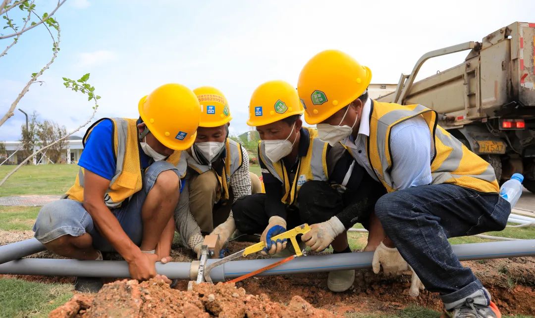 中深裝集團支援南園小學20座淋浴房,冷水管、熱水管、排水管應急安裝。