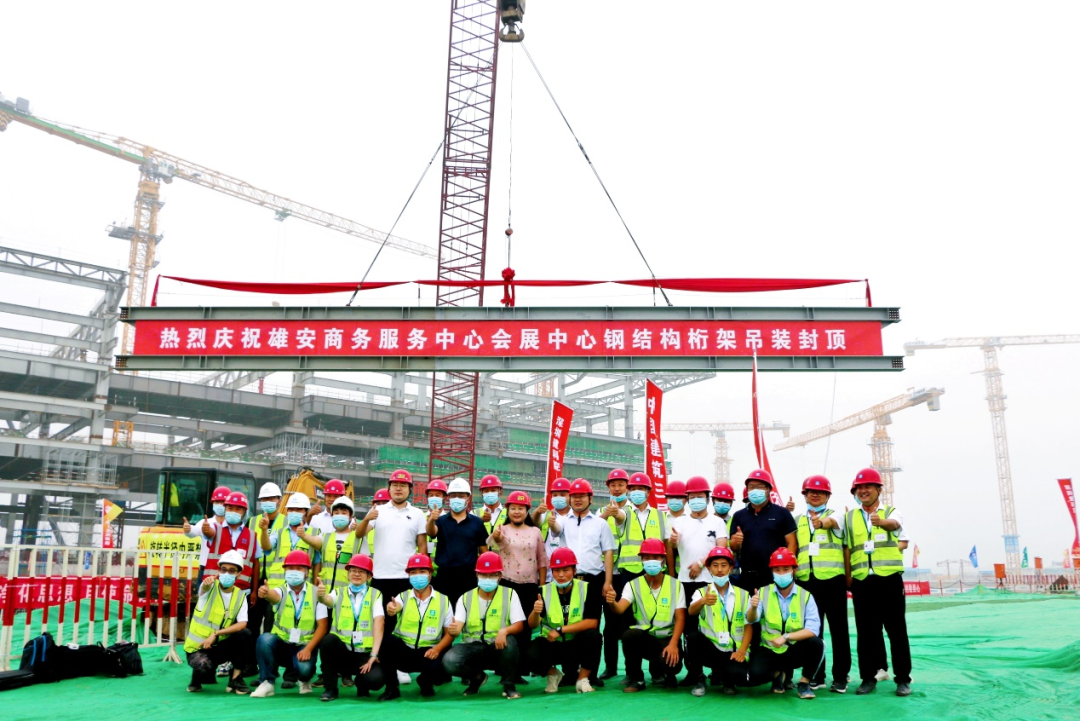 2020年7月25日,雄安商務服務中心會展中心工程主體結(jié)構(gòu)正式封頂,提前5天完成“730”目標。項目于2020年1月22日正式開工,開工即遭遇新冠肺炎疫情突發(fā),在各單位的協(xié)同努力下,疫情生產(chǎn)兩手抓,建科院全過程工程咨詢團隊全程駐場,提供24小時技術服務,確保現(xiàn)場施工快速推進。