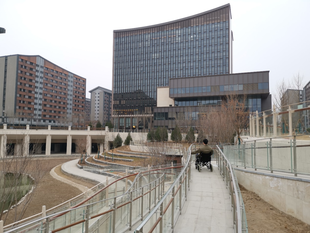雄安商務服務中心是雄安新區(qū)首批率先開工建設的房建項目,對雄安房建全面開工建設有重要的引領作用,是當前雄安新區(qū)具有重大影響力的名片項目之一。深圳建科院作為全過程咨詢單位,高度重視,組織院內(nèi)專家進行重要關鍵節(jié)點把控,現(xiàn)場團隊每周現(xiàn)場設計巡檢,充分體現(xiàn)“建筑師負責制”的優(yōu)勢及對現(xiàn)場施工效果的把控力度。商服項目100%無障礙設施覆蓋,圖為駐場同事坐輪椅檢驗無障礙通道設施。