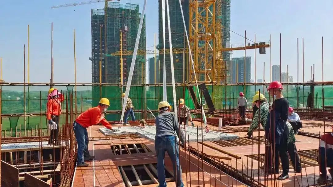 湖南偉大集團青龍灣項目的第五代建筑示范區(qū)的建筑工地上,機聲隆隆,人語喧嘩,呈現(xiàn)出一片熱火朝天的施工景象。工人們正在進行裝配式構(gòu)件的吊裝施工。在現(xiàn)場負責人的指揮下,一塊塊PC構(gòu)件從天而降,多名施工工人默契配合,順利的將構(gòu)件安裝到預定位置,整個過程流暢而快捷,充分體現(xiàn)了“綠色建筑”的高效與節(jié)能。