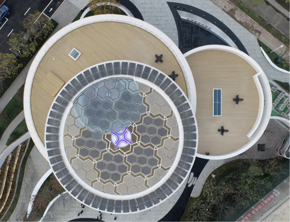 圖為雄安中交未來科創(chuàng)城•未來源點智能微網(wǎng)儲能項目。建筑設計理念源自雄安站“青蓮滴露、潤澤雄安”的寓意,以淀泊風光為靈感基礎,形似層層蓮葉,高低錯落,形成“蓮葉三疊、魚戲蓮葉”之意。頂部采用的定制化六邊形異形綠色發(fā)電建材,不僅透光且走線隱蔽, 電力采用光伏直流供電,并基于智慧能源大腦系統(tǒng)進行管理,最大化實現(xiàn)能源實時可控、系統(tǒng)化節(jié)能。
