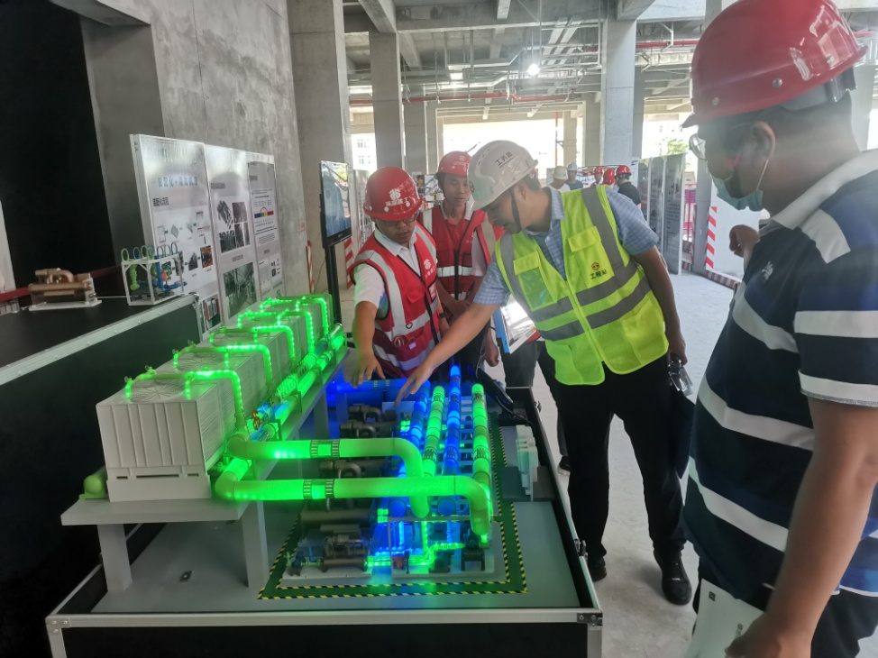 企富晟團隊聚焦中央空調(diào)的節(jié)能減碳,推動綠色高效機房發(fā)展,致力為世界環(huán)境的美好做出貢獻。企富晟承接了深圳市中醫(yī)院光明院區(qū)的裝配式一體化高效機房設計和建設,圖為企富晟技術負責人講解高效機房模型。