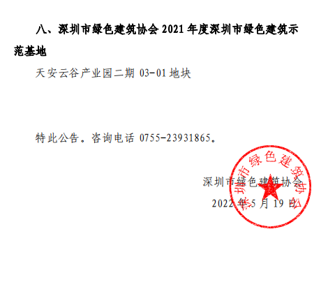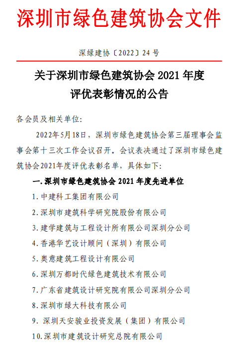 關于深圳市綠色建筑協(xié)會2021度評優(yōu)表彰情況的公告