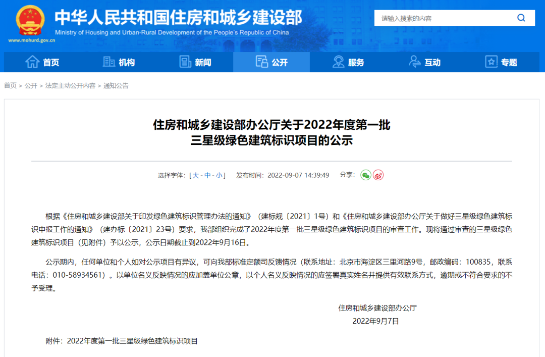 日前,根據(jù)《住房和城鄉(xiāng)建設(shè)部關(guān)于印發(fā)綠色建筑標(biāo)識(shí)管理辦法的通知》(建標(biāo)規(guī)〔2021〕1號(hào))和《住房和城鄉(xiāng)建設(shè)部辦公廳關(guān)于做好三星級(jí)綠色建筑標(biāo)識(shí)申報(bào)工作的通知》(建辦標(biāo)〔2021〕23號(hào))要求,住房和城鄉(xiāng)建設(shè)部組織完成2022年度第一批三星級(jí)綠色建筑標(biāo)識(shí)項(xiàng)目的審查工作,并將通過(guò)審查的三星級(jí)綠色建筑標(biāo)識(shí)項(xiàng)目予以公示。