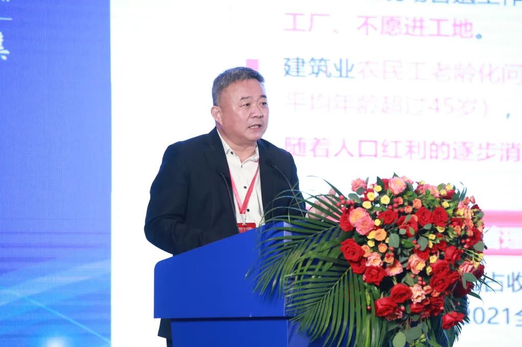 張宗軍就“建筑業(yè)轉(zhuǎn)型升級的探索與實踐”作主題報告:建筑業(yè)作為國內(nèi)經(jīng)濟支柱產(chǎn)業(yè)之一,與當前經(jīng)濟社會發(fā)展和“雙碳”戰(zhàn)略之間的矛盾日益突出,國家倡導的“新型建筑工業(yè)化”是建筑業(yè)轉(zhuǎn)型升級、實現(xiàn)高質(zhì)量發(fā)展的必經(jīng)之路。報告圍繞企業(yè)自身的實踐經(jīng)驗,講述模塊化建筑和科技賦能所帶來的變革與思考,為“雙區(qū)”深圳的建筑業(yè)轉(zhuǎn)型發(fā)展提供借鑒參考。
