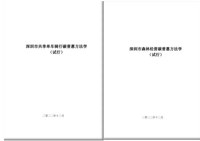 深圳市碳普惠方法學(xué):《深圳市共享單車騎行碳普惠方法學(xué)(試行)》《深圳市森林經(jīng)營碳普惠方法學(xué)(試行)》。