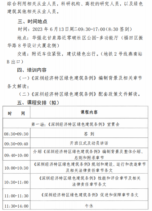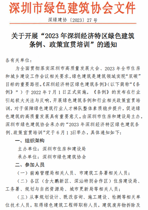關(guān)于開展“2023年深圳經(jīng)濟(jì)特區(qū)綠色建筑條例、政策宣貫培訓(xùn)”的通知