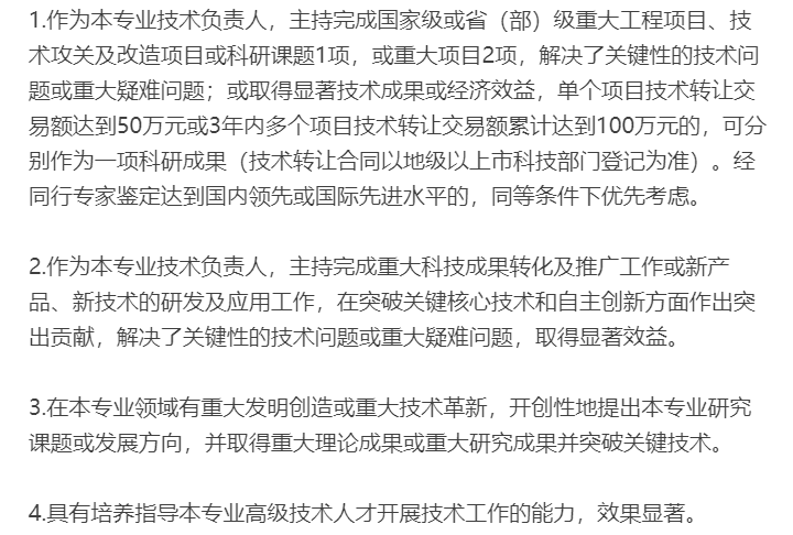 根據(jù)《廣東省建筑工程技術(shù)人才職稱評價改革實施方案》(粵人社規(guī)【2019】33號)的具體要求,正高級工程師申報條件如下: