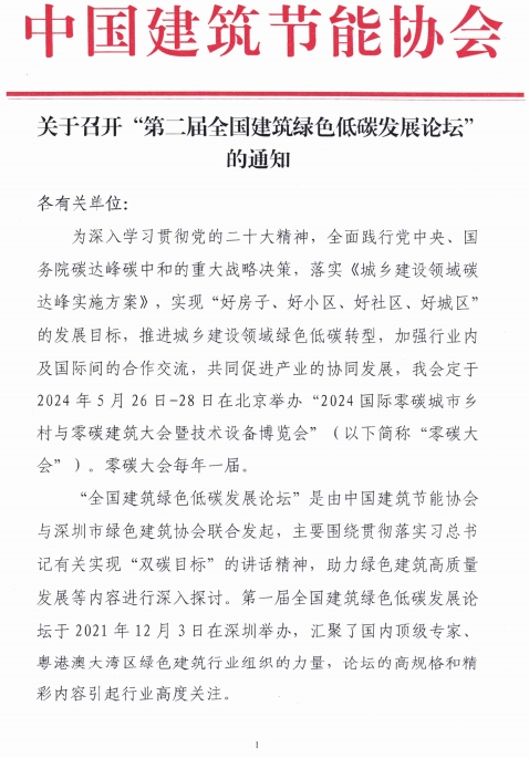 關(guān)于召開(kāi)“第二屆全國(guó)建筑綠色低碳發(fā)展論壇”的通知
