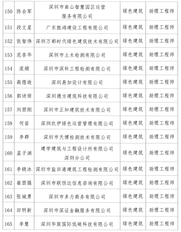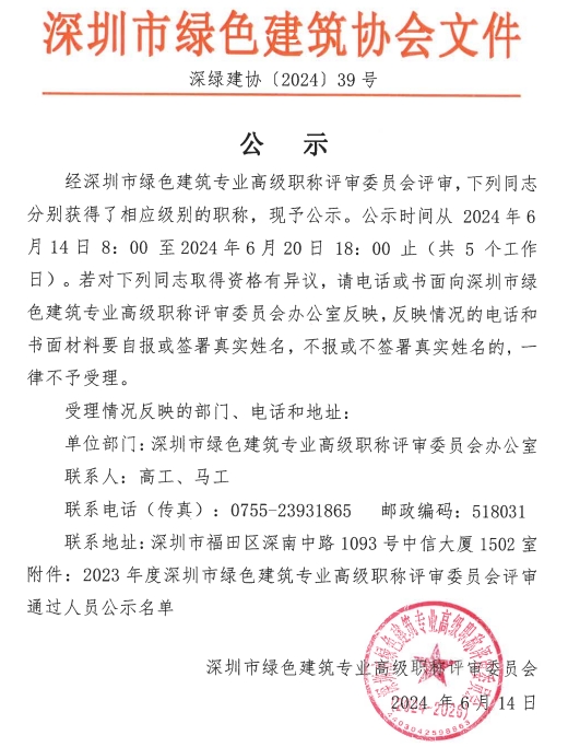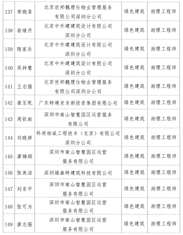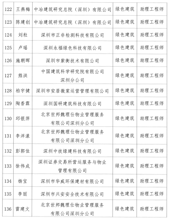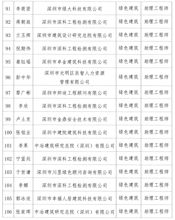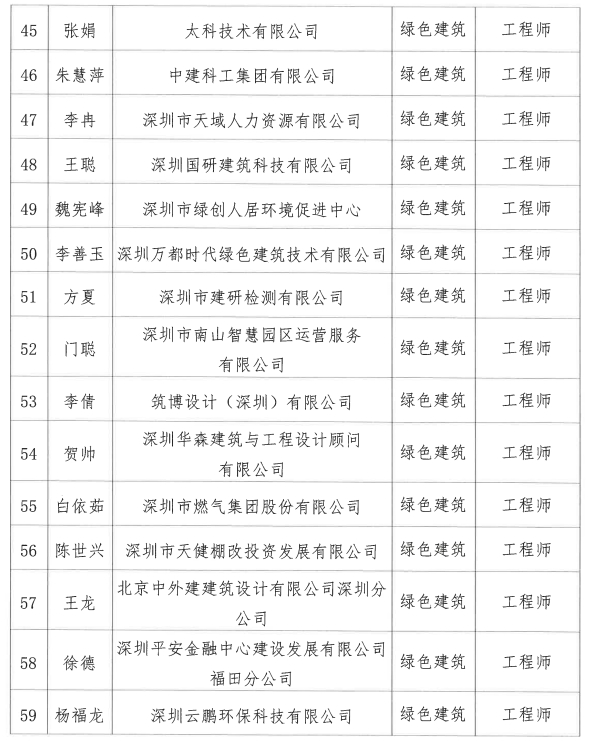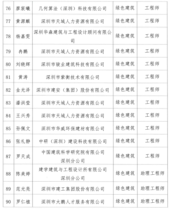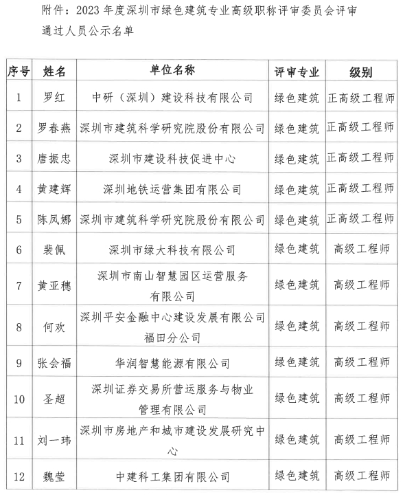 2023年度深圳市綠色建筑專業(yè)高級(jí)職稱評(píng)審委員會(huì)評(píng)審?fù)ㄟ^人員公示名單