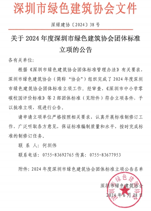 關(guān)于2024年度深圳市綠色建筑協(xié)會(huì)團(tuán)體標(biāo)準(zhǔn)立項(xiàng)的公告