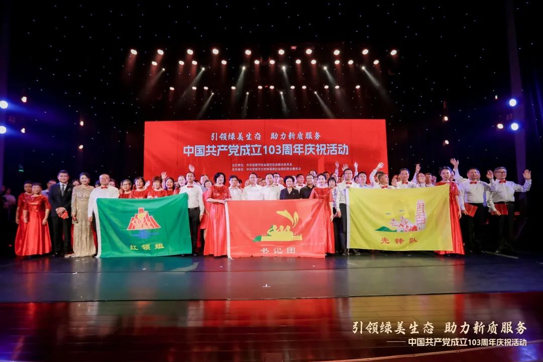 6月30日,百名黨員集體宣誓、百名書記大合唱,一場由深圳社會組織總會聯(lián)合黨委主辦、深圳市文創(chuàng)體育類社會組織聯(lián)合黨委支持的“引領(lǐng)綠美生態(tài) 助力新質(zhì)服務(wù)”——中國共產(chǎn)黨成立103周年慶祝活動在深圳市文化館影劇院舉辦。