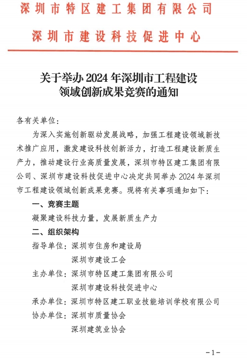 關于舉辦2024年深圳市工程建設領域創(chuàng)新成果競賽的通知