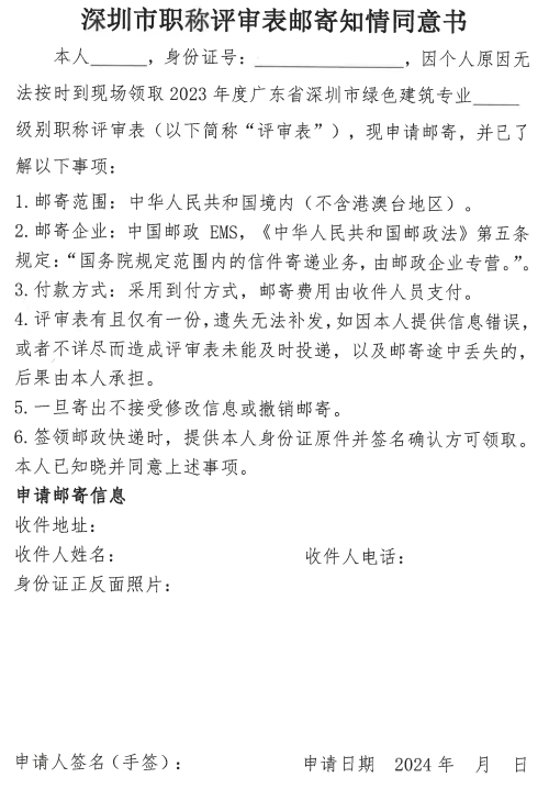 關于領取2023年度廣東省深圳市綠色建筑專業(yè)職稱評審表的通知