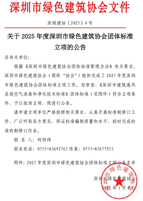 關于2025年度深圳市綠色建筑協(xié)會團體標準立項的公告