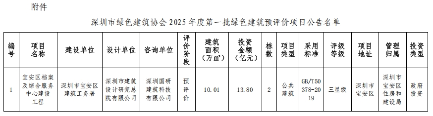 深圳市綠色建筑協(xié)會關(guān)于2025年第一批綠色建筑預(yù)評價項目的公告