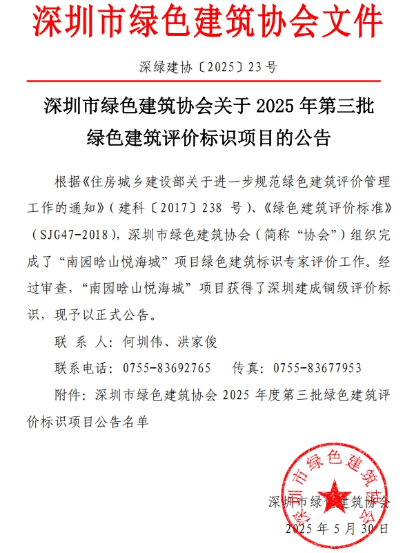 深圳市綠色建筑協(xié)會關(guān)于2025年第三批綠色建筑評價標(biāo)識項目的公告
