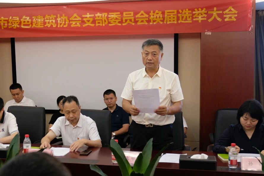 協(xié)會黨支部匯報換屆選舉前期籌備工作情況后,聯(lián)合黨委副書記兼紀(jì)委書記玄甲有宣讀《關(guān)于中共深圳市綠色建筑協(xié)會支部委員會換屆選舉請示的批復(fù)》