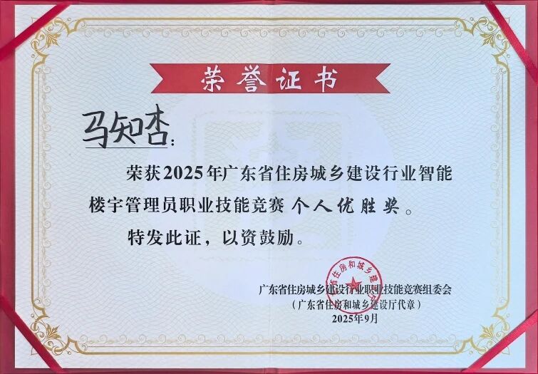 9月16日至18日,由廣東省住房城鄉(xiāng)建設(shè)廳、省人社廳聯(lián)合主辦的2025年廣東省住房城鄉(xiāng)建設(shè)行業(yè)智能樓宇管理員職業(yè)技能競(jìng)賽在清遠(yuǎn)舉行。此次競(jìng)賽規(guī)模盛大,共有31支代表隊(duì)、93名選手同場(chǎng)競(jìng)技。樓宇科技胡治豪、馬知杏以及廣州公司賀炳林三人代表招商積余出征。