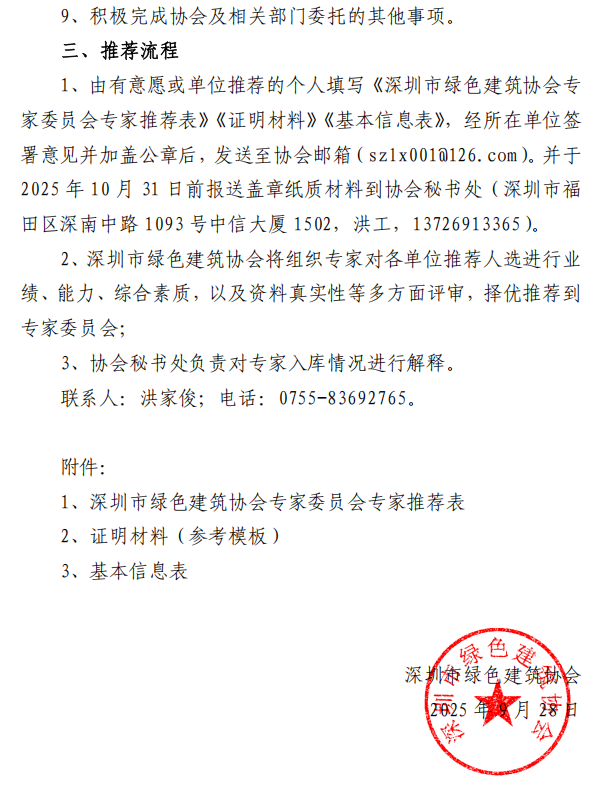 附件1:關于推薦深圳市綠色建筑協(xié)會專家委員會第八批專家的通知