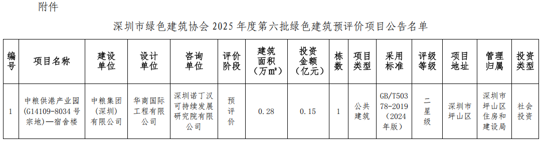 深圳市綠色建筑協(xié)會關(guān)于2025年第六批綠色建筑預(yù)評價(jià)項(xiàng)目的公告