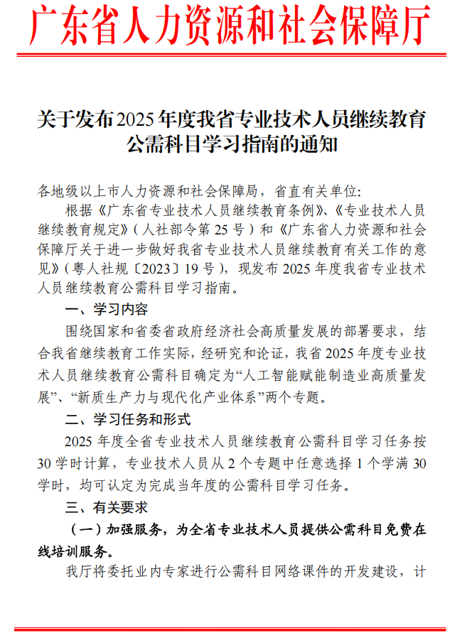 關(guān)于發(fā)布2025年度廣東省專業(yè)技術(shù)人員繼續(xù)教育公需科目學(xué)習(xí)指南的通知
