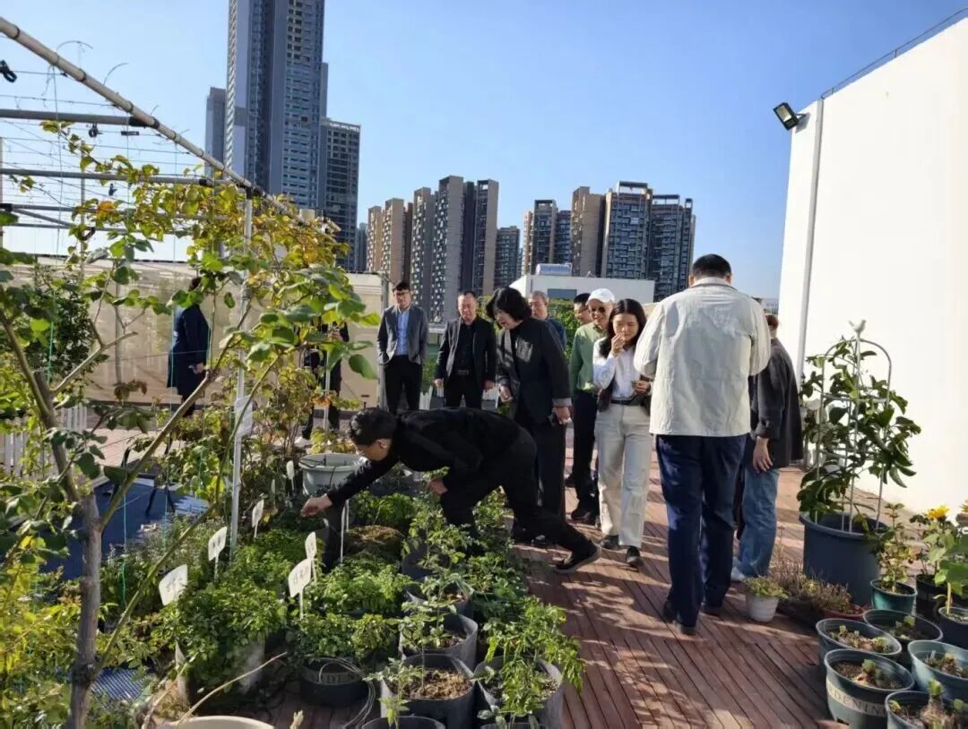 與會代表參觀海卓生物屋頂農(nóng)場,現(xiàn)場采摘品嘗可食用景觀植物。