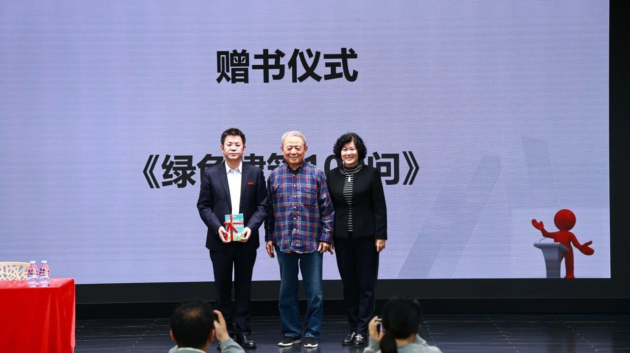 中國城科會綠建委主任王有為作《綠色低碳國策的解讀》主題報(bào)告,并攜手深圳市綠色建筑協(xié)會共同向深圳實(shí)驗(yàn)學(xué)校(高中園)總校長李震宇(照片左一)贈送書籍《綠色建筑100問》